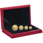 Your four-coin set comes packaged in a red lacquer case with a black set-up box.